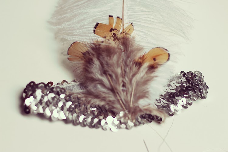 Tout d'abord, placer la grande plume au milieu de votre headband puis la coudre en faisant beaucoup de points à la base. Ajouter les trois petites plumes par dessus, un peu en éventail. Les coudre. Une fois que vous avez cousu, assurez vous qu'elles tiennent bien droites. Sinon, recoudre jusqu'à ce que l'ouvrage tienne ( elles peuvent peser lourd et il vaut mieux coudre plusieurs fois ).